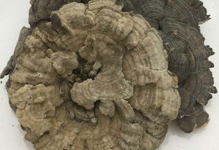 Coriolus Versicolor 别名:杂色华体会hth·(体育)(中国)官方网站、黄华体会hth·(体育)(中国)官方网站、灰芝、瓦菌、彩云革盖菌、多色牛肝菌、